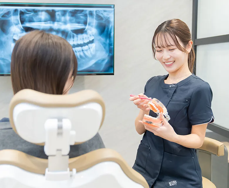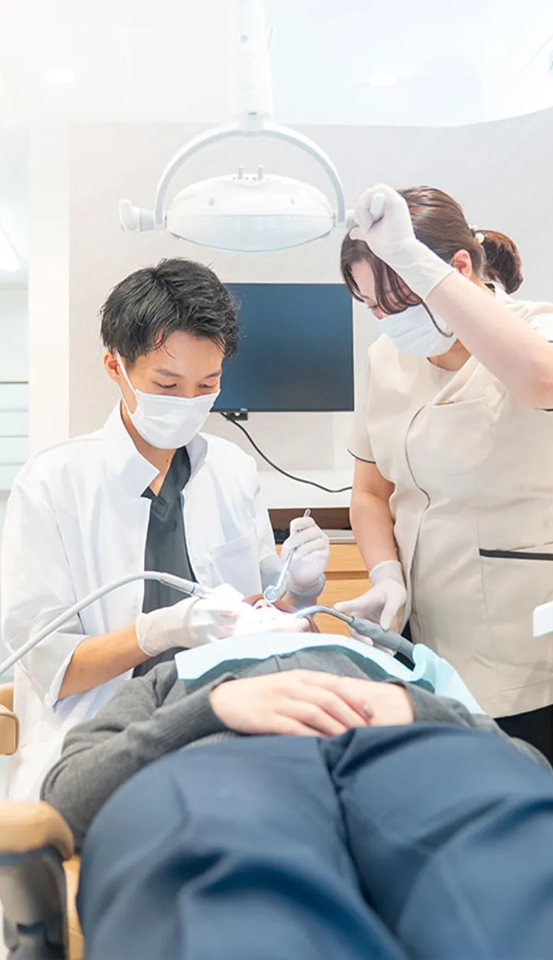 すべてのメンテナンス時に歯科医師が口腔内をチェック。 歯ぐきや噛み合わせ、小さな異変まで見逃さず、 担当歯科衛生士とのチーム体制で予防管理を行っています。