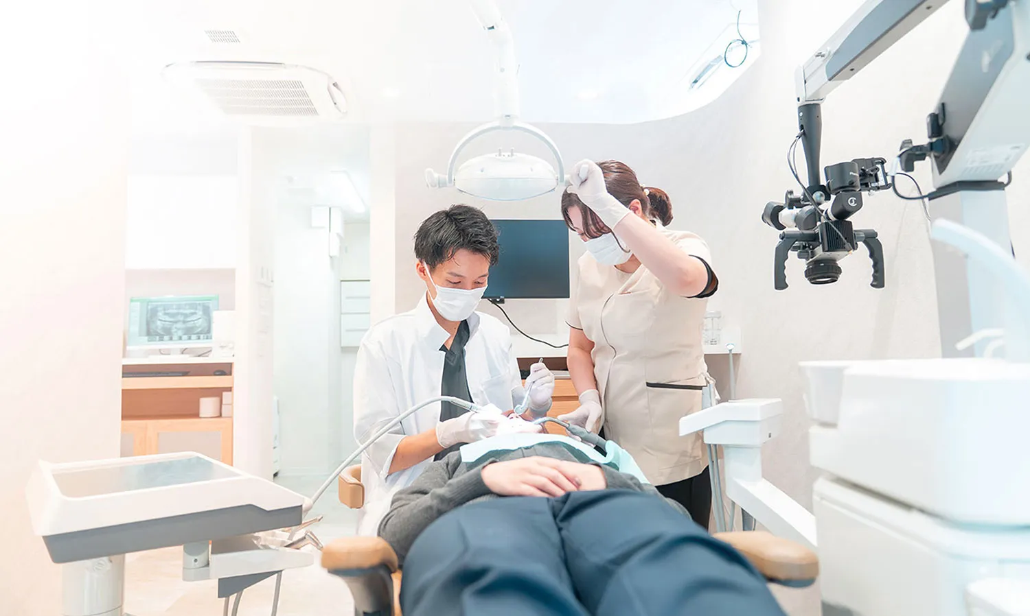 やさしい照明と落ち着いた空間で行うクリーニングは、 思わず眠ってしまうほどの心地よさ。 院長自身も体験する、リラックス重視の予防ケアです。