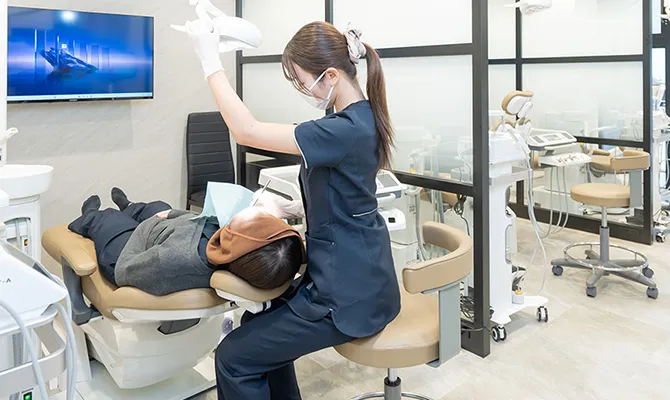 温水機能付き機器を使用し、刺激を抑えた快適な施術を実現。 冷たい水が苦手な方や知覚過敏のある方にも、 安心して受けていただけるやさしいケアです。